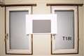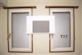 テストは室内の窓サッシとブラインドでユガミ/ヴィネットを、中央部の白色と