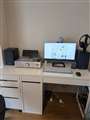 ここも懸念点だったのですが、140p幅のPCデスクの超端に置いて、中にDENONのPMA-600NEと23インチのディスプレーも丁度ピッタリでいい感じに収まっています。