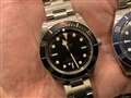 チューダーにあまり詳しく無い方には細かい違いはわかりづらいですが、まず目に飛び込んでくるのは全体のサイズ感です。ダイバーズにとしては非常に数少ない39mmケース系に薄めのケース厚、そしてブラックベイとの比較はやはりブラックベゼルにシルバー数字ですが、58はゴールド数字となり文字盤のゴールドレターとのマッチングがとてもバランスが良いです。さらにベゼル上部にある逆三角形のレッドポイントが全体のポイントとなり、一目観てデザイナー達の拘りが伝わってきました。