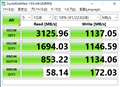 CrystalDiskMarkの画像を添付いたしましたのでご覧ください。