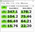ベンチマークでは約350MB/sと、ひと昔前のSATA SSDを凌駕するスコアをマーク。