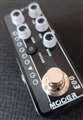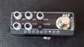 1台のミニペダルに、1種類のアンプサウンドを2チャンネル分収録したアンプシミュレーターペダルのMicro Preampシリーズ。この003は、「オランダで制作される世界的に人気のハイエンドハイゲインアンプ」、Koch Power Toneのサウンドを収録しています。今回はこちらを店頭試奏にてレビューします。Micro Preampシリーズに共通する、クリーンチャンネルとドライブチャンネルを搭載。それぞれのチャンネルでノブの設定が自動保存されるので、チャンネルを切り替えても作った音が失われません。また、フットスイッチをON/OFFだけでなく常時ONのチャンネル切り替えスイッチにしたり、チャンネル切り替えボタン長押しで内蔵のキャビネットシミュレーターをON/OFFできるなど、この小さなサイズの中に機能を多数詰め込んでいます。各チャンネルにはゲイン、ボリュームと3バンドEQを搭載しています。チャンネルごとのプリセット機能により、最初にONにしたときやチャンネルを切り替えたとき、ノブの位置と音の設定が合わないところは慣れが必要ですが、意味が分かって慣れてしまえば何も難しいことはありません。Micro Preampシリーズは何度かレビューしていますが、弾く度にこの機能性はよく考えてまとめたなと感心してしまいます。このMicro Preamp 003のサウンドは、かなり特徴的です。Kochアンプを演奏したことがあるなら分かるかと思いますが、あの独特の重たい音が再現されています。音が重たいといっても、ローが分厚いとかブーミーということではありません。周波数帯のバランスは良いんですが、なぜかヘヴィなんです。クリーンもドライブもどちらのチャンネルにもこの特徴は表現されています。もともとハイゲインアンプですので、ドライブチャンネルはかなり強く歪ませることができますし、クリーンチャンネルもゲインを上げるとけっこう歪みます。つい歪ませすぎると、ちょっと安っぽい昔のマルチエフェクターみたいに感じるかもしれません。ですが、丁寧に音を作るとこのペダルのすごさが分かります。ミニサイズでノブも小さくて軽く操作できてしまうから間違えてしまうこともありますが、アンプだと思ってゆっくりとノブを回し、高く設定しすぎないように調整するとリアルなアンプトーンになります。Koch特有の重さもあいまって、他になかなかないサウンドを作ることができるのが魅力だと思います。