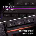 またメディアキーが付いておりメディアの再生、停止、一時停止、早送りと戻しができるものが右上にあります。