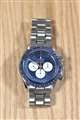 オメガスピードマスターのデザインをベースにメタリックブルーの文字盤、