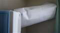 メーカーから窓用の専用ダクトパネルが販売されていて、通常はそのダクトパネルにホースを繋いで排熱する仕組みとなっています。ダクトパネルを買えば確実にトータル3万円を超えるので、ちょっと高くついてしまいますね。幸い、我が家には壁に吸気用?の小さな換気口があったので、それを利用することにしました(写真参照)。