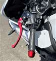 心地よい前傾は苦にはなりません。短距離(100キロ/日位)しか乗っていないので、手首の疲れも感じません。見た目優先でレバーをツーリングタイプの社外品に交換して更に使い易くなりました。純正のグリップヒーターは最強に設定すると関東の冬季では熱すぎる優れもんです。定番のバーエンドウエィトを取付けました。その効果は?です。