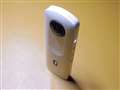 スティック状のボディーに、昆虫の複眼のように半球のレンズが2個飛び出ている。シャッターボタンを押すと、それぞれのレンズが各180度ずつの空間の撮影を担当する360度カメラで、一般的なカメラとは全く違う、ユニークな形状である。