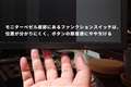 モニターベゼル底部にあるファンクションスイッチは位置が分かりにい |