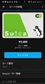Suica画面。残額表示が小さく、すぐ消えるのが難点。設定で操作なしでも決済可。 |
