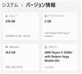 AMD Radeon Vega 8 Graphicsでグラフィックス搭載メモリは2GBとなっています。