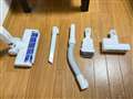 パイプを外して使うハンディ掃除機としては、コンビネーションノズル、ミニモーターブラシ、すき間ノズル、延長ホースのアタッチメントが付属。どれもやはりダイソンを彷彿とさせるのは否定できない。付け替えの際の篏合性は若干難あり。