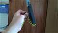 うすくて平べったい本体は台に置くより壁掛けに適している