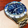 見栄えのするフェイスは44mmと大きく、日本人には些か不釣り合いな面も。このあたり購入に一考を重ねる一因になるかもしれません。またズッシリと腕に来る本体ケースは重量感があり、約180グラム・・・はめているというよりは、大袈裟ながら手に持つ感覚でしょうか・・・さりとてケースサイドの仕上げも丁寧。4時方向にずれた龍頭は手の甲に当たるのを回避させる気遣いを持ち、所有欲を満たしてくれるGSマークも健在。ブレスの仕上げも怠りなくといったところではあります。