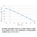 このレンズに関しては、魚眼レンズの射影方式(画面上での距離と角度の関係)についての情報がどこにも見当たらなかったため、自分で計測を行いました(グラフ参照:写真中央部が90°、円周部が-15°です)。周辺部では角度に対する距離の変化が緩やかになる傾向があるようですが、全体としては角度と距離が比例関係する「等距離射影」とみなして問題なさそうです。この結果をもとに、天空に向けて撮影した写真に太陽位置を合成し、日照確認を行っています。