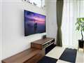 文句なし。幅120cmの台に載せるため脚は内側に付けましたが違和感はありません。背面の端子接続口もHDMIに集約・整理されて結線が楽です。テレビ下に7cm弱の隙間ができるので、ハブが余裕で収まって助かります(スピーカーの音道を阻害しない配慮は必要)。将来はここにMac Miniを置くかも。