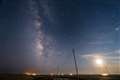 参考に、昨夜撮った写真を添付します(月齢17、18夜の月が、天の川を追いかけるかのように上がって来たので少しの時間しか撮影できませんでした)。