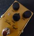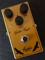 Super Fuzz等のメジャーモデルから東ドイツ製プリアンプなどの超マイナーモデルまで、数々のヴィンテージペダルを独自の視点で選択し、再現したモデルを制作するFredric Effects。自身のミュージシャンであるビルダーらしい味の濃さのあるブランドです。このGolden Eagleは、伝説のオーバードライブという名前が冠されるペダル、Klon Centaurを再現したモデルです。店頭試奏でのレビューとなります。まず音を出すと、明らかにあの音というか、Centaurらしい独特の太さとミッドの厚さ、そしてバランスと質感があります。実機と比べると、音色のバランスを重視して作られている印象があります。実は回路はオリジナルモデルと全く同じで作られていますが、パーツの個体差というよりも最終的にチェックして調整するところなどでブランドの個性が出たりします。Golden Eagleは、オリジナルCentaurと比べるとバランス型。太すぎないバランスが良いサウンドとなっていて、オーバードライブペダルとして使いやすい特性があります。Centaurはアンプや他のペダルと組み合わせてより良い音色を生み出すようなイメージですが、Golden Eagleはほとんど音色は変わらないものの、ほんの少しバランスよく、クリーンアンプとくみあわせた単体使用でも使いやすくなるよう調整されているように感じました。これはもしかしたらリファレンスとして使った個体の特性なのかもしれませんし、Fredric Effectsが意識しないレベルで行ったものかもしれませんが、いずれにしてもあ間違いなくCentaurらしいサウンドでありながら、細かく音を出してみるとそういった個性が見える部分がある、という印象です。そしてこの音がこのコンパクトペダルの筐体、スタンダードなスタイルのペダルで出せるというのはこのペダルの強みと言えるでしょう。音色としては間違いなくCentaurそのものと言える音ですし、ここで述べた小さな違いはバンドアンサンブルに入れば分からない、どころか単体で聞いても分からない程度の違いとなると思います。そのため、演奏しやすさのあるGolden Eagleの方が好みという人もいるのではと思います>