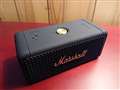 Marshallらしいデザイン。フォレストが別サイトではあまり人気がない色?のようで、最安値でした。渋くて深みのあるグリーンだと思うのですが…。防水仕様になっているせいか、ボタンも表示もシンプル。無駄がないデザイン。手に取った感じ、ずしっと重みがあるのでそこは見た目とのギャップがありました。Marshallのロゴが光ってます。