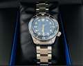 鮮やかなブルーダイアルは写真よりもちょっと大人しめて、品のある輝きです。