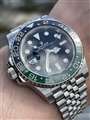 ロレックスは伝統的なブランドなので、ファンの方も極端な変わり種を敬遠する傾向があると感じています。私がロレックスで最初に気になったモデルは、2018年デビューの126711CHNR(いわゆるコンビのカフェオレ)でした。こちらもレビューさせて頂きましたが、初めて投入されたの黒×茶のベゼルと、これまた初めてのローズゴールドのロレゾール。この4トーンのなせるデザインは衝撃的でした。当初はコンビは不人気だとか、ウ〇コだとか、一部のアンチの方が多かったのですが、すぐに大人気のマラソンターゲットモデルになりました。かたや、この126720VTNRのレフレィー(スプライト)モデルについては、同様に、初めて投入されたブランドカラーであるグリーンベゼル、竜頭もデイトも反転の左設置。初めての提案を喚起した歴史的なモデルと思います。コレクターとしては、同じ仕様の色違いを所有するより、多種多様なバリエーションを愉しみたい!少なくとも私はそれを大切にしています。GMTのステンレスでは、レフレィー+ジュビリー仕様を第一希望に期待せず正規店訪問致しましたが、有難いことに、ご紹介頂けました。在庫があれば直ぐに買えるほど単純でないことは重々承知しているので、この場を借りて御礼・感謝の意を示したいと思います。安心して下さい!履いて・・・いやいや 「使ってますよ!」迷う必要はありません。是非、貴方もレフティーの魅力に安心して飛び込んじゃって下さい。お待ちしております!
