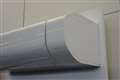 「プラス換気ユニット」を装着した室内機(右)と非装着機(左) |