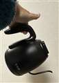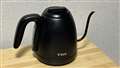 いかにもカフェ用という細口の注ぎ口を持った電気ケトル。アイコン化された形であり、デザイン的には文句なし。色は黒。こちらもカフェ用でありがち。