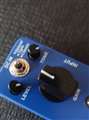 ディストーションペダルといえば、クラシックなサウンドのペダルがよく使われることがあります。定番といえばProCo RatやBOSS DS-1、MXR Distortion+などが名前に上がります。一方、モダンなジャンルではディストーションペダルはあまり多用されず、アンプの歪みやアンプシミュレーターのサウンドが使われることも多くあります。そんな中、Mooer Soloは珍しいスタイルのモダンディストーションペダルです。今回は店頭での試奏となります。多くのディストーションペダルは、音のエッジがざらざらとしていて、荒々しいサウンドを作るのに向いているものが多いです。Mooer Soloもそういったクラシックディストーションが生み出した名サウンドを作ることもできるエッジの分厚さと鋭さを持っていますが、同時に音の表面が滑らかに感じる、独特の現代的なのサウンドが特徴と言えます。いわゆる“コンポーネント系”ギターと真空管アンプの間に接続すると最も力を発揮するようなサウンドが特徴です。ミニサイズペダルなので、例えば多くのサウンドはオーバードライブで作り、そのうち一部の曲で使うディストーションというような使い方にも向いています。コントロールノブの構成はとてもシンプルです。LEVEL、GAIN、TONEのみのスタイルで迷わず音作りが可能。そして3モードスイッチによるサウンドのバリエーションもあります。Naturalモードではギタートーンがそのまま真空管アンプで歪んだ感じの音色で、Tightはザクザク刻むようなサウンド、ジャンルに良いローエンドが特徴。ギター単体だと少し物足りないかもしれませんが、これがベースと合わさるととても良い感じになります。そしてClassicモードでは音の粒が細かいモダンな風合いと、クラシックディストーションのエッジが合わさったようなサウンドです。このペダルは、特に真空管アンプとの組み合わせに向いています。よくある“JC対策”と言われる、JC-120アンプとの組み合わせだと、思ったほど激しくないと感じるかもしれません。できれば真空管アンプと合わせて使ってみると良いと思います。