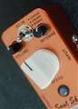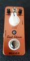 Mooerが長年制作するミニペダルは多彩なラインナップがあります。多くのモデルがいろいろな時期に発売されていますが、おおまかに3つのスタイルに分けることができます。1つは最初期に作られたアナログペダル群。定番モデルや人気ハンドメイドペダルの回路を下にしたペダルです。第2期のものがデジタル回路を用いたコンパクトペダルで、エフェクトを選択したり様々な機能をミニサイズに収めたスタイル。第3期はMicro Preampシリーズなどのよりデジタル化が進んだスタイルです。このSoul Shiverは第2期にあたるモデルで、ミニペダルの中に3つのエフェクトを収録し、選択して使うことができます。収録エフェクトはコーラス、ヴィブラート、ロータリースピーカー。どのエフェクトもVolume、Intense、Speedコントロールで調整することができます。コーラスとヴィブラートは、現在のスタンダードなコーラスサウンドとはちょっと異なっています。一般的にコーラスといえば爽やかな風合いのBOSS系やEH系のものをイメージしますが、このSoul Shiverのコーラスは、じつはユニヴァイブのコーラス・ヴィブラートです。60年代のサイケデリックなサウンドを基本としているので、いわゆるコーラスと考えて使うと、ちょっとエグ目のサウンドになります。ユニヴァイブと思って使えば、少し爽やかさのある使いやすいユニヴァイブ系サウンドとなります。つまり、コーラス・ヴィブラートともにモジュレーションディレイの揺れというよりはフェイザーに近いような動きが混ざっています。ロータリーモードは、ロータリースピーカーてきなうねりが加わるサウンド。ユニヴァイブ的なサウンドであるコーラスモードに近い音色ですが、それよりはうねりは少なく、波形としてはよりスタンダードなサインウェーブに近いような印象です。これらのサイケデリック〜オルガン的な揺れ方をするサウンドを、このミニサイズで扱うことができるというのはとても面白いです。楽曲の中でちょっと古いようなうねりを加えたいとき用にボードに入れておけて、場所もそれほど取らないのが利点と言えます。