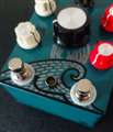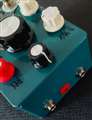 独特の視点から生み出される個性的なペダル。サウンドだけでなくデザインにもローファイな風合いが漂うHungry Robot Pedalsのディレイ・リバーブペダル、Wash V2 Tap Tempo。今回は店頭試奏でのレビューです。Washは洗うという意味ですが、どちらかというと洗い流す、流して覆い隠すようなイメージの言葉となっています。1000msを超えるアナログ的なタップテンポディレイと、Accutronicsのスプリングリバーブサウンドを作るデジタルリバーブユニットを内蔵したペダルとなります。単にディレイペダルとして使うこともできますが、このペダルの真骨頂はディレイとリバーブを組み合わせたサウンドです。ディレイとリバーブを組み合わせたペダルはたくさんありますが、このペダルの場合はディレイエフェクトとリバーブエフェクトを同時に使うだけのペダルではなく、それらが複雑に絡み合ったようなサウンドのペダルです。Washを最小にして、Time、D.Level、D.Feedbackだけを使うと、スタンダードなディレイペダルになります。Washを組み合わせると、ディレイとリバーブが組み合わさって、残響がプレイをWash、つまり洗い流すようなサウンドになります。リバーブの洪水が押し寄せるようなサウンドです。幻想的だったり異世界な残響サウンドはいろいろあります。オクターブを加えるシマー系や、無限大に伸ばすケーブリバーブなどは有名な効果です。Washも無限大にリバーブを伸ばすことができますが、そのサウンドとしては洞穴の冷たい空間の残響とはまた違っています。実際に演奏するとやはりWashというモデル名が示すようなトーンそのものという印象です。面白いのが、単に使いやすいディレイとしてタップテンポスイッチを使うことはできますが、リバーブパッドのように残響が押し寄せているときにタップテンポでディレイタイムを変えると、ピッチがうねり、次元がねじれるような効果を作ることができるのもポイントです。例えば2台のアンプを使って2台目のアンプにこのペダルをつなぎ、音を小さめにしておくと、演奏のバックに残響がずっと分厚く加わるような使い方もできたりします。
