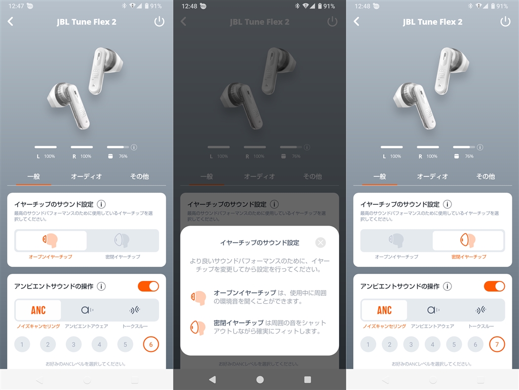 『Tune Flex 2のアプリ画面一部』JBL TUNE FLEX 2 [ホワイト] sumi_hobbyさんのレビュー・評価画像1/1