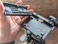 グリップを握ると3つの足のロックが同時に外れる |