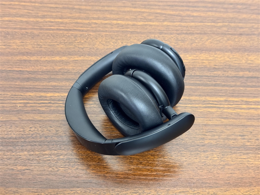 イヤーカップを折りたたんだところ。あまりコンパクトにはならない。