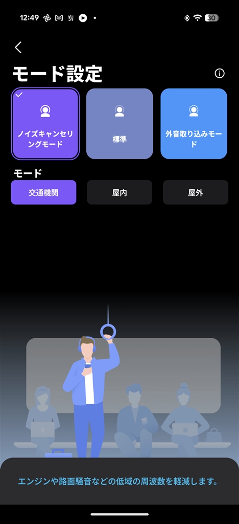 『アプリのノイズキャンセリングモードの設定画面。』ANKER Soundcore Q30i A3028N34 [ネイビー] コヤマタカヒロさんのレビュー・評価画像4/6