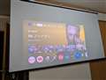 画面を投影したところ。壁まで1.7mだと光学ズーム1.25倍でも70インチ前後だ。 |