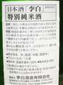 安い純米酒に有り勝ちな雑味感はほぼ無く、さすが特別純米酒と言った上級感はあり、とても飲み易いのすが、同じ濃厚にしても 奥の松のが、美味しいように感じました。