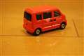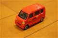 プロポーションはスズキ エブリィそのもの!妥協なくカクカクボティをデフォルメせずにミニカーにしたような。カラーリングはちょっと朱色になってしまってますが(実車はもうちょっと深い赤)、逆にミニカーとしては見栄えがしてちょうどイイです。前・側面・背面の日本郵便タンポ印刷もキレイですし、リアル。ホイールは、いつものトミカと共通で、スポーツカーだったら似合わないのですが、このエブリィならば、銀の鉄チンホイールに見えてリアル!(笑)車内も最低限は再現されてます。