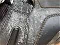 合皮やプラスチックが併用されているこの靴は、維持のためのケミカルにも注意が必要です。
