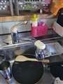 今までコップなどでシンクの両脇を流して洗っていたのにロングシャワーは伸ばせば隅々まで水が届いて楽に掃除出来ます。
