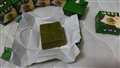 抹茶チョコの中に抹茶パウダーともちグミが入っています。