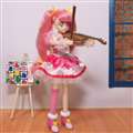 目玉はペイント、バービー系、リカちゃん系ではペイントで大きな目玉ですが、それよりも更に大きい。拳より大きい感じで、余りに不自然。お鼻はバービー系、リカちゃん系と比べると凄く低い。お口は唇の立体的な表現はされず一文字にペイントされているだけです。御髪はピンク色の細い化繊で、解いてしまったら手に負えなくなると思います。そして中学生の設定なのに幼過ぎる顔立ち。