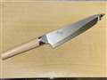 凝ったからにはいろいろな包丁を揃えたいと思うようになり、あえて1本でどうとかいう三徳ではなく、この銘柄では牛刀を選択してみました。箱出しで紙を切ってみましたが、今までの廉価な(2千円級の)ステンレス包丁とは違い、カッターナイフのような鋭い切れ味に感動しました。野菜もサクサクです。