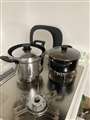 右の一般鍋より炊飯鍋は背が高く厚みがあるので重い。 |