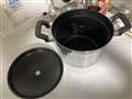 鍋の内側や蓋の裏もテフロン加工されている。内側に水量の目安のラインがあって便利 |